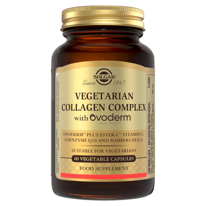 Solgar - Colágeno vegetariano Ovoderm® es un innovador complejo a base de colágeno Ovoderm®, vitamina C EsterC, coenzima Q10 y silicio, especialmente formulado con ingredientes para realzar la belleza natural de la piel y minimizar la apariencia de líneas finas y arrugas.